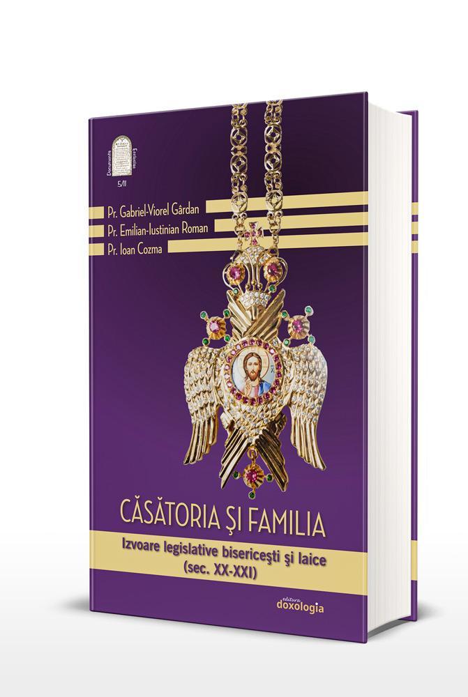 Prin volumul de față, se continuă publicarea unei serii de izvoare privind căsătoria şi familia, valorificând atât legislația bisericească, ortodoxă, cât şi cea laică din România, cu scopul explicit de a pune la îndemâna specialiștilor, dar și a tuturor celor interesați de acest subiect, un instrument de lucru care să permită abordări istorice, canonice și juridice cu privire la instituția familiei. Dacă în volumul precedent, ne-am oprit asupra materialului documentar din secolele XVII-XIX, de această dată avem în vedere legislația bisericească ortodoxă și laică apărută pe parcursul secolului al XX-lea și începutul celui de-al XXI-lea, până în momentul editării acestei lucrări.