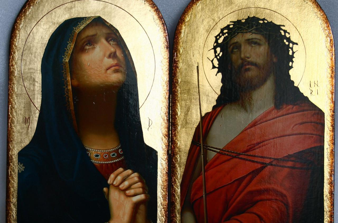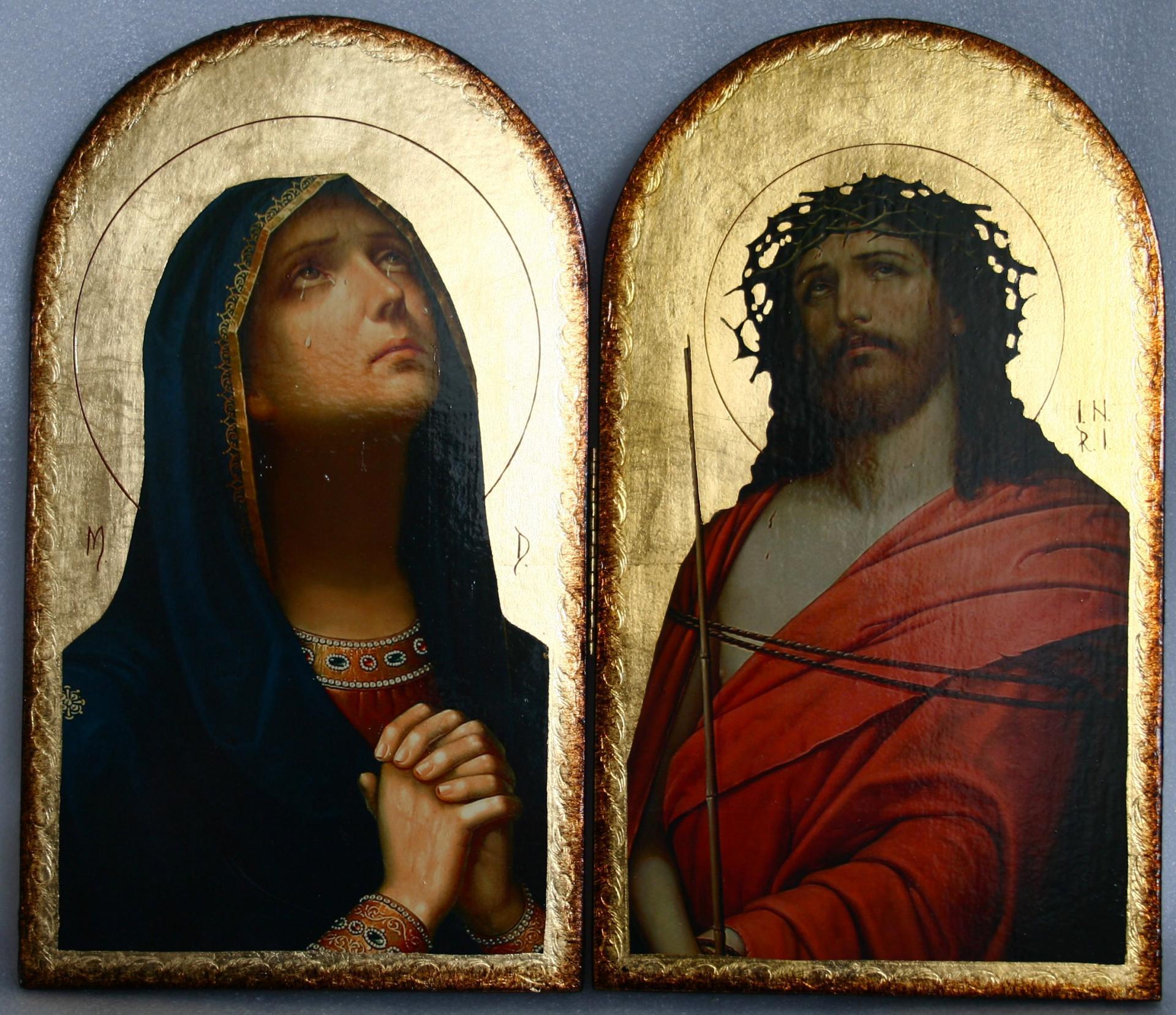 Cele două icoane sunt prinse între ele prin intermediul a una sau două balamale.