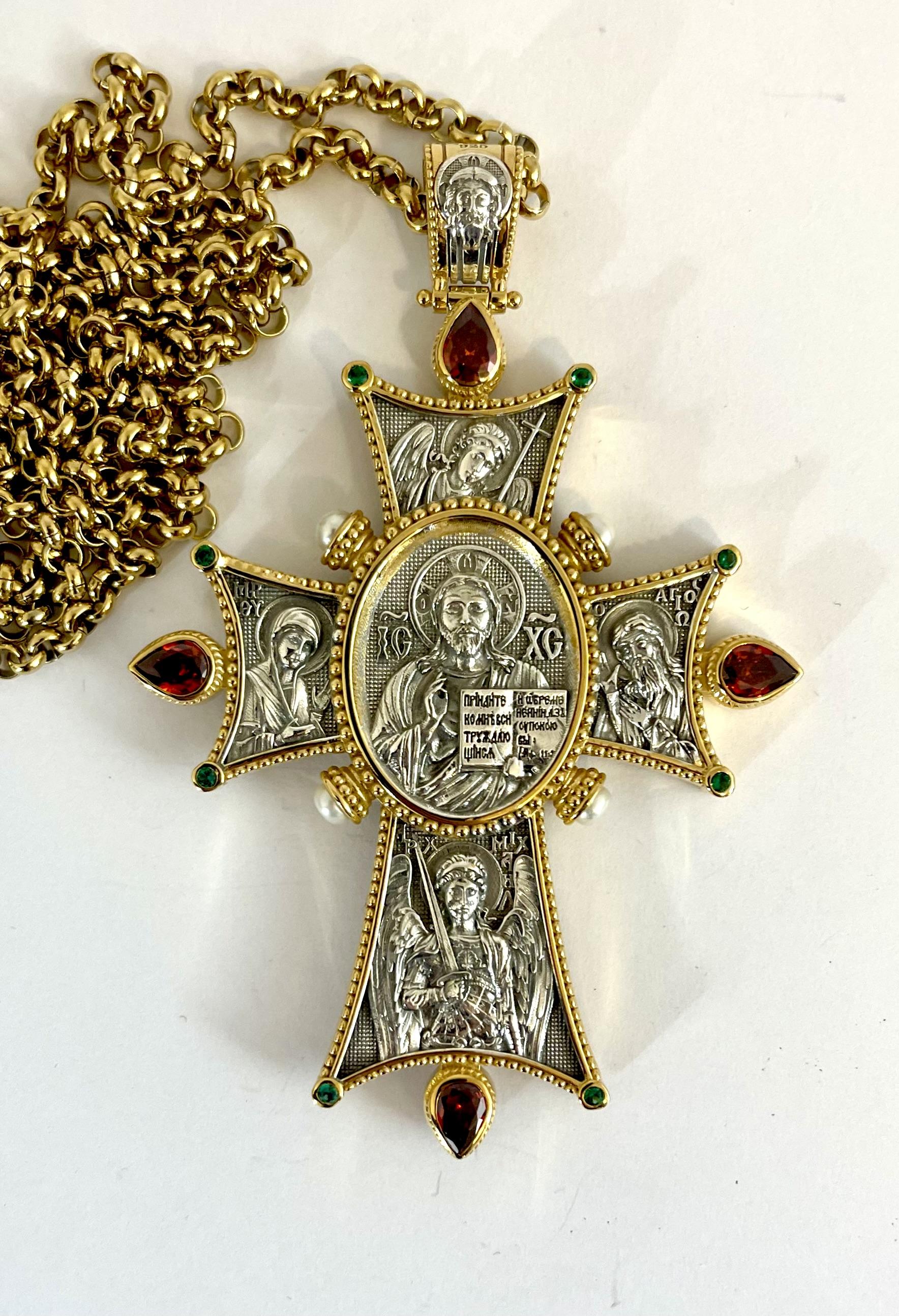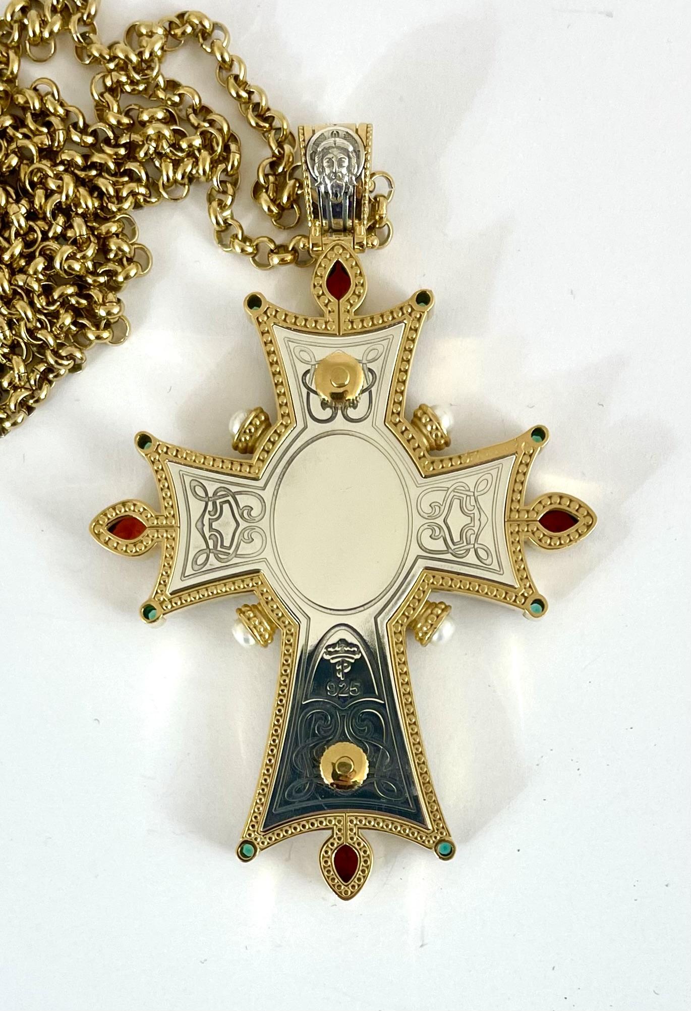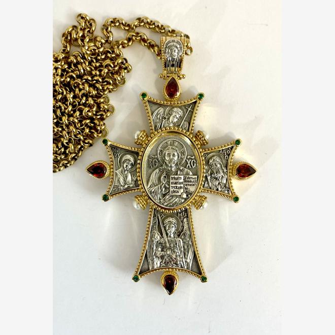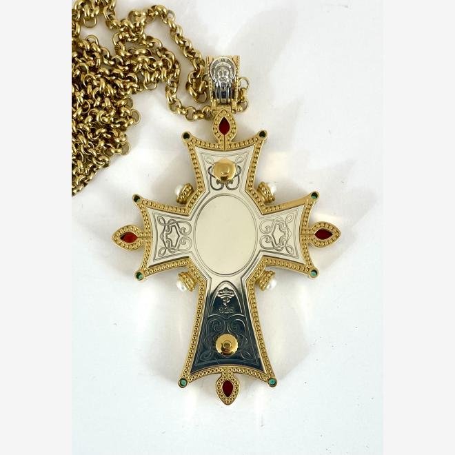 Cruce din argint aurit cu lant din matrial comun.