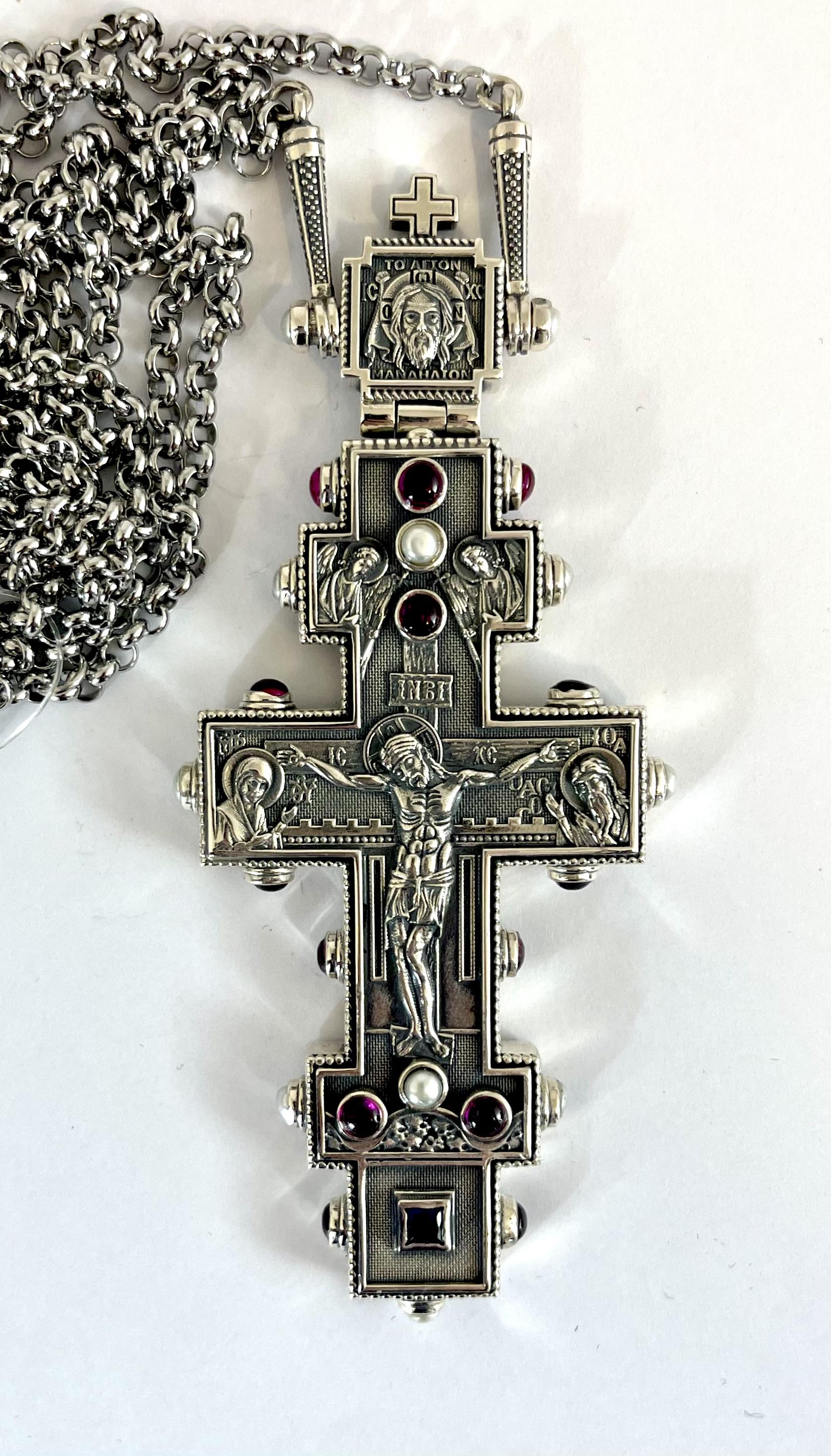Cruce din argint cu lant din matrial comun.