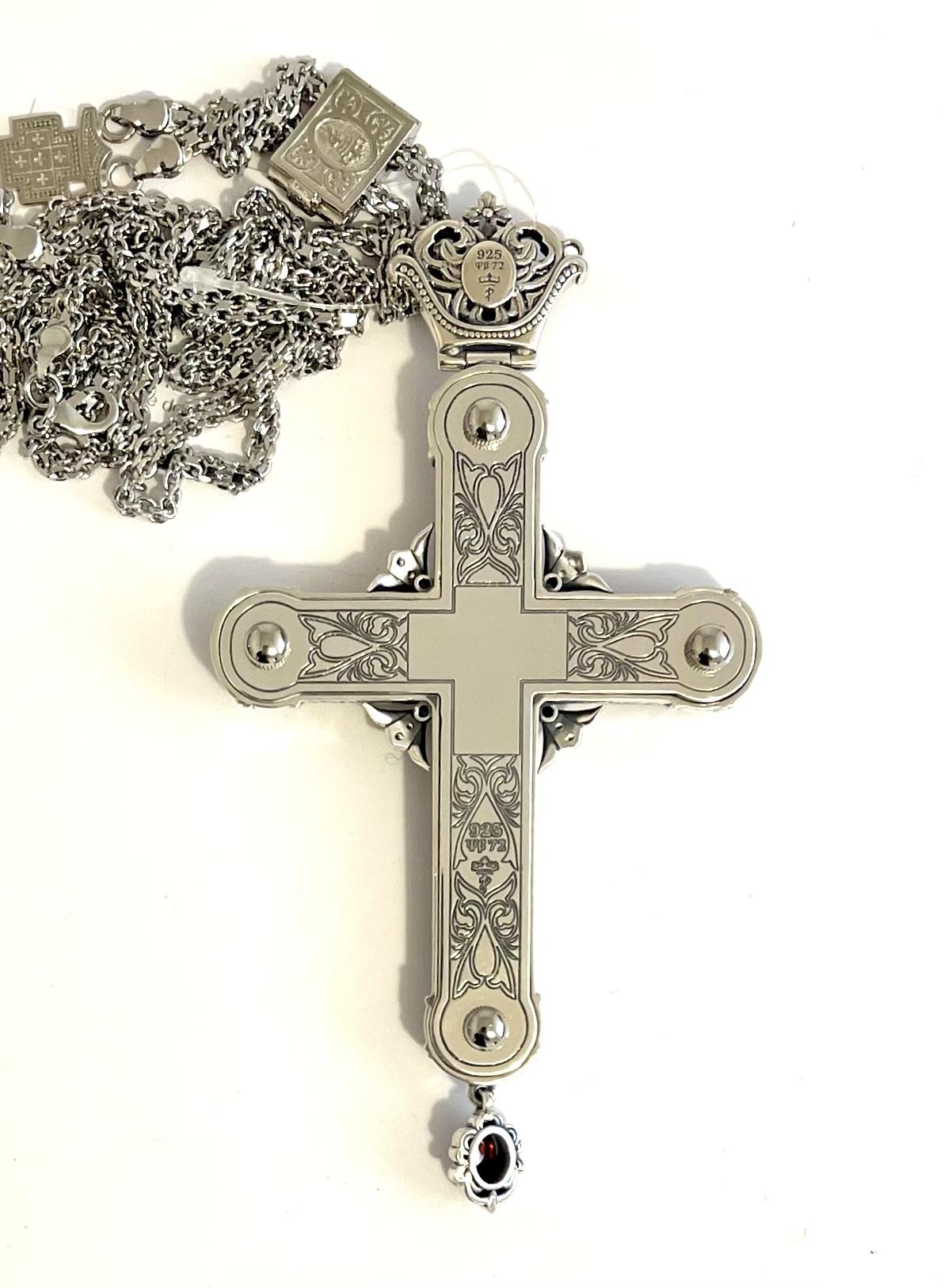 Cruce din argint cu lant din matrial comun.