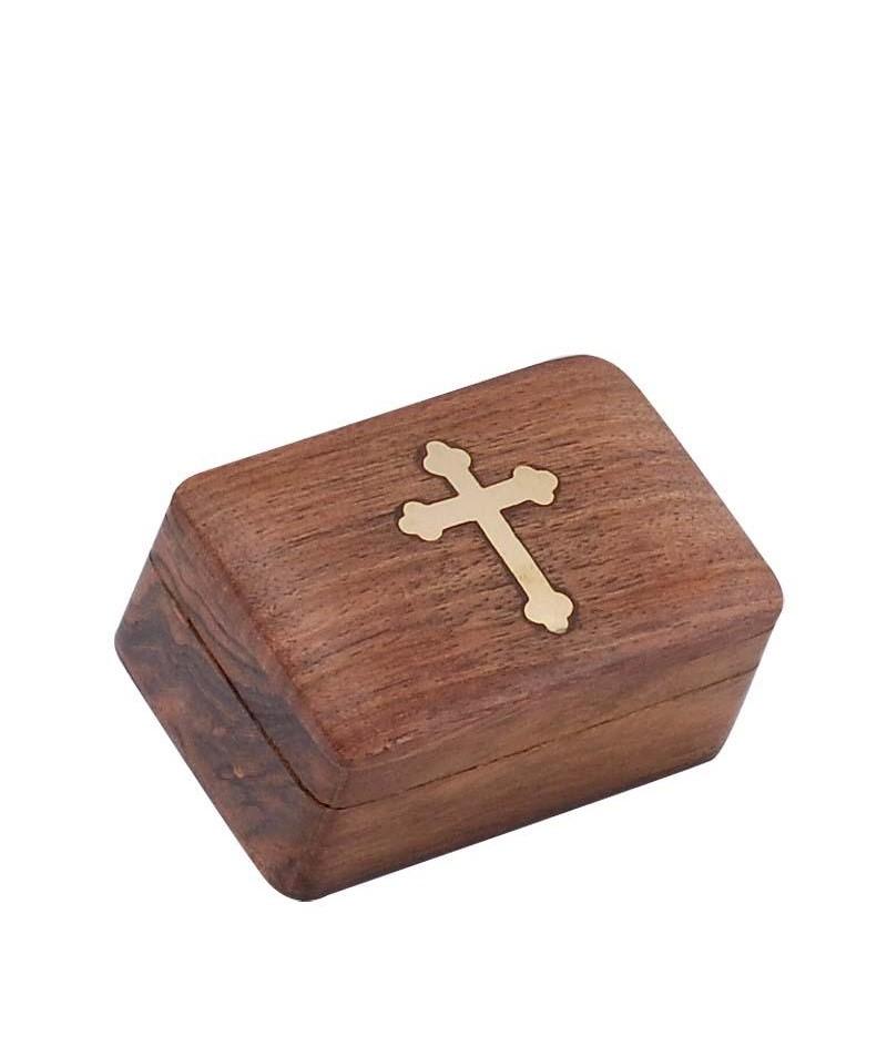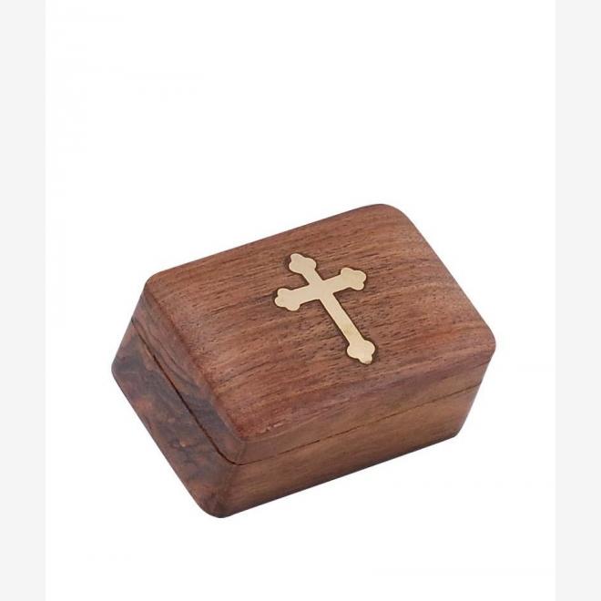 Cutie de lemn cu cruce de bronz.