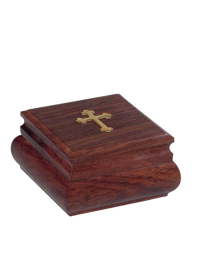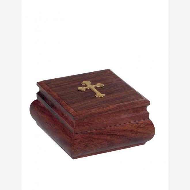 Cutie pătrată din lemn cu cruce de bronz.
