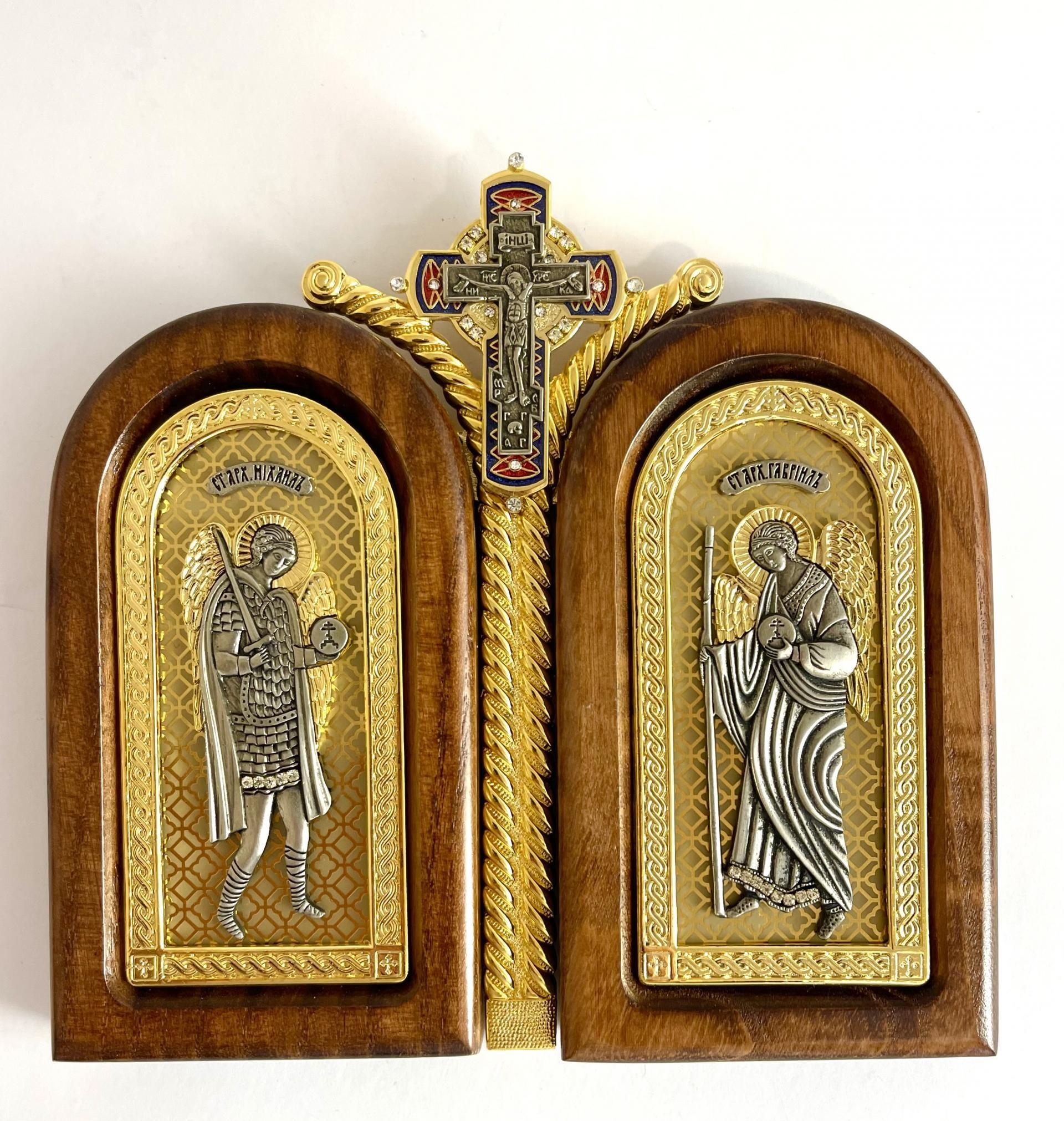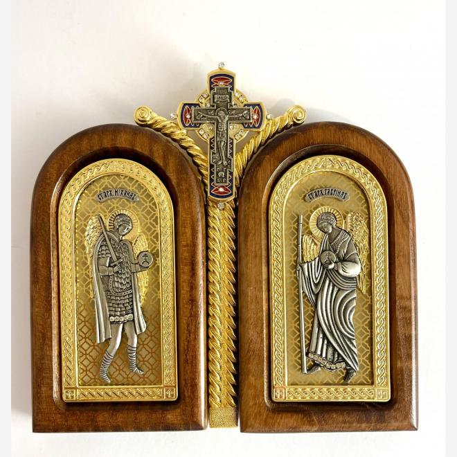 Diptic aurit si argintat, cu rama din lemn