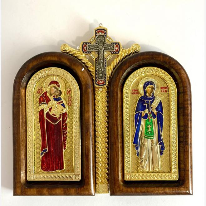 Diptic aurit si argintat, cu rama din lemn