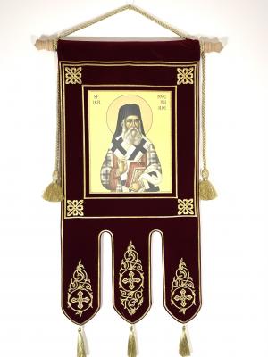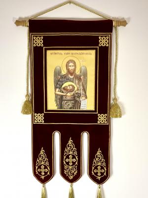 Epitaf brodat pe catifea cu scenă litografiata