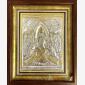 Icoană argintată cu ramă din lemn si sticlă