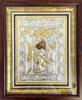Icoană argintată cu ramă din lemn si sticlă