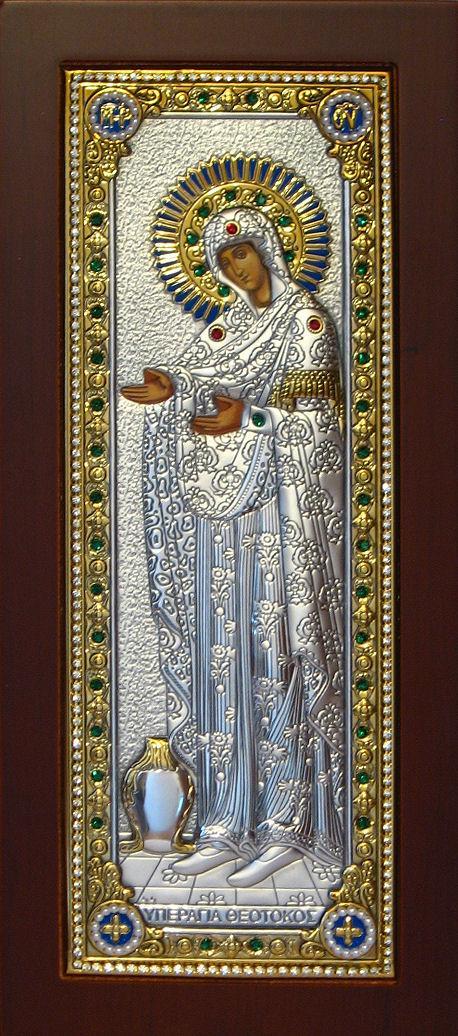 Icoana argint (4gr) si aur cu pietre semipretioase.