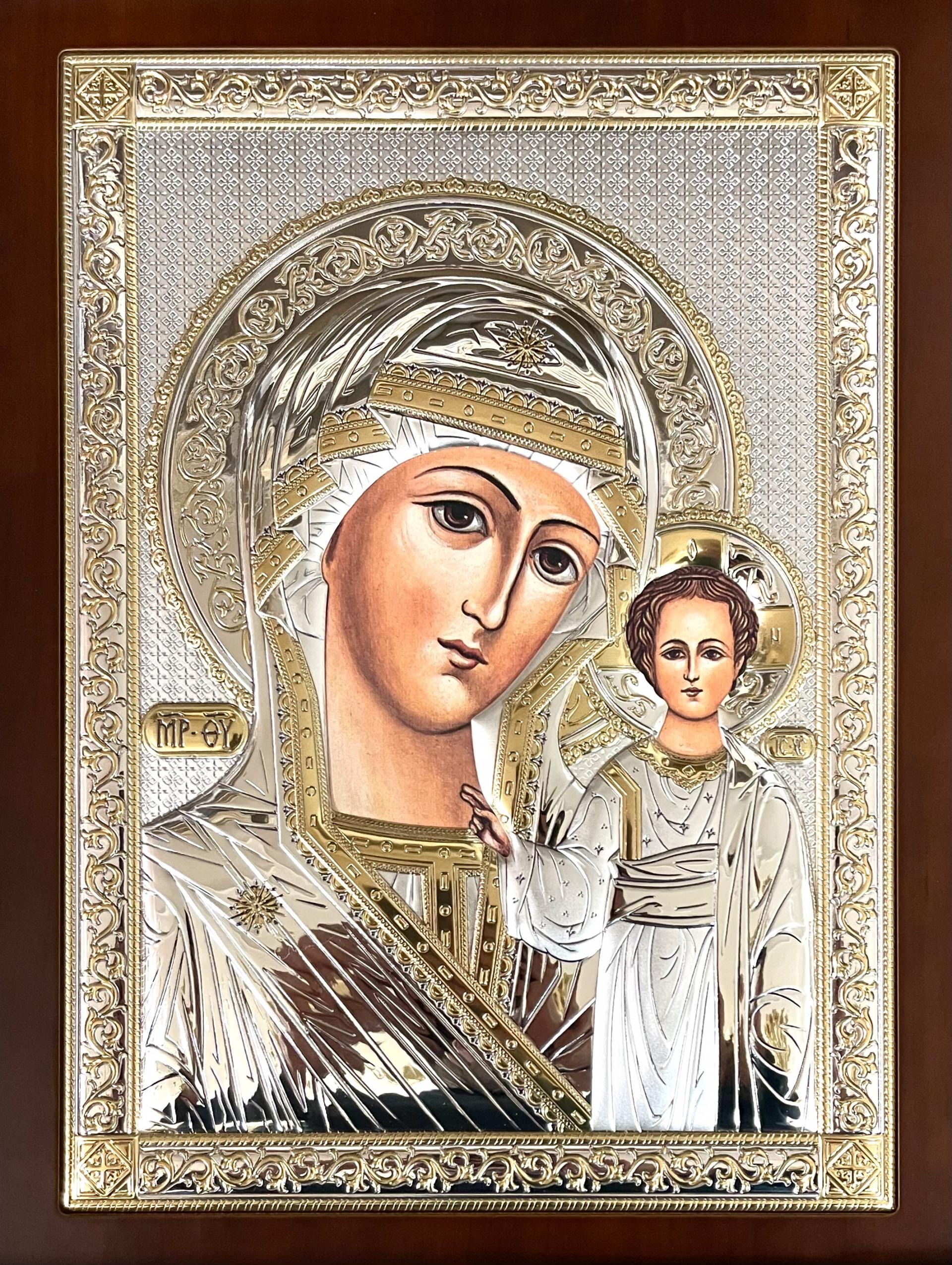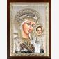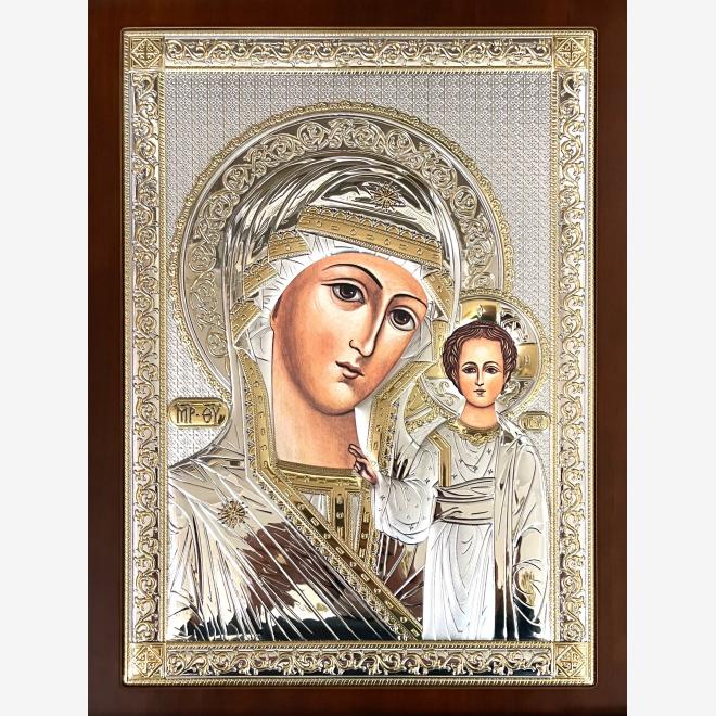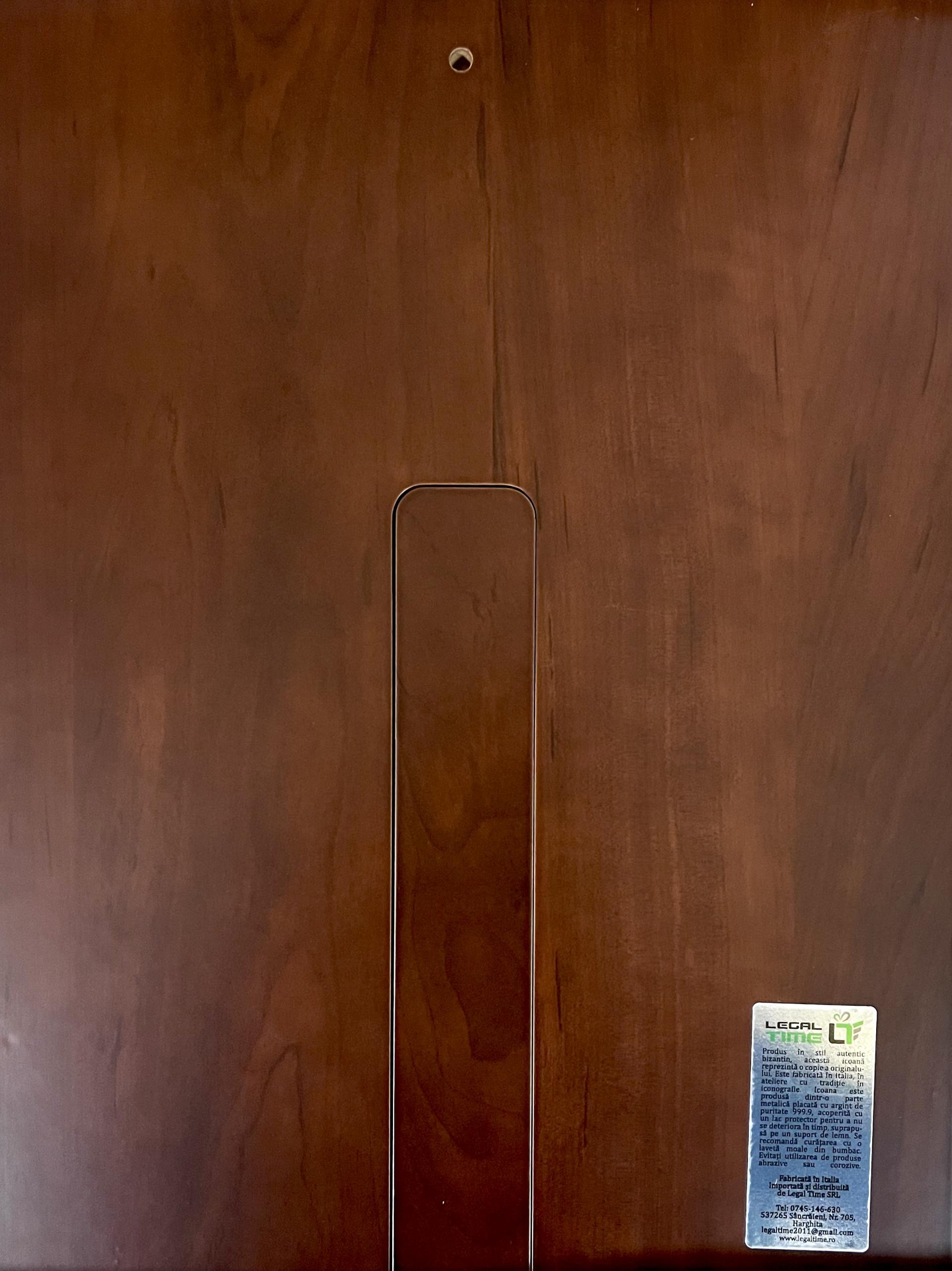 Icoană argintată  cu suport de lemn.