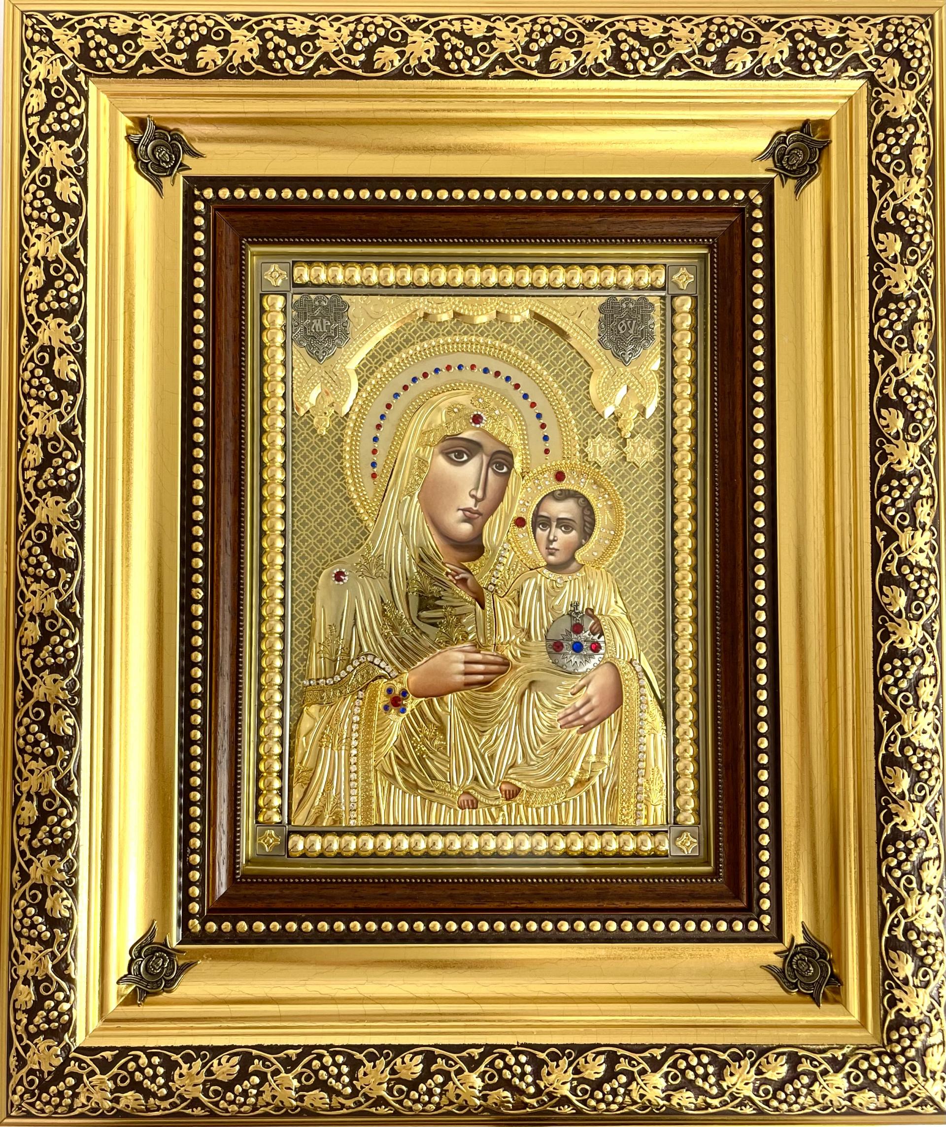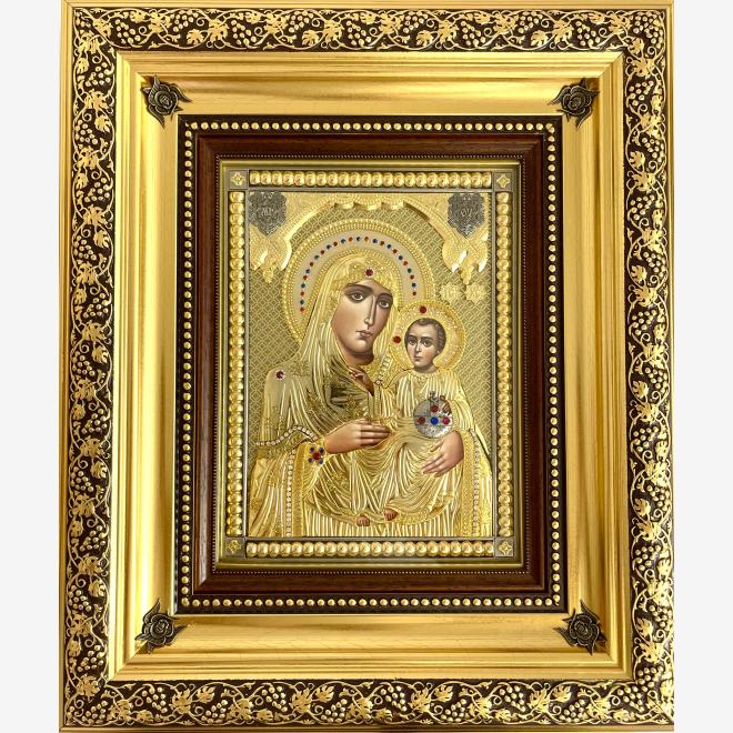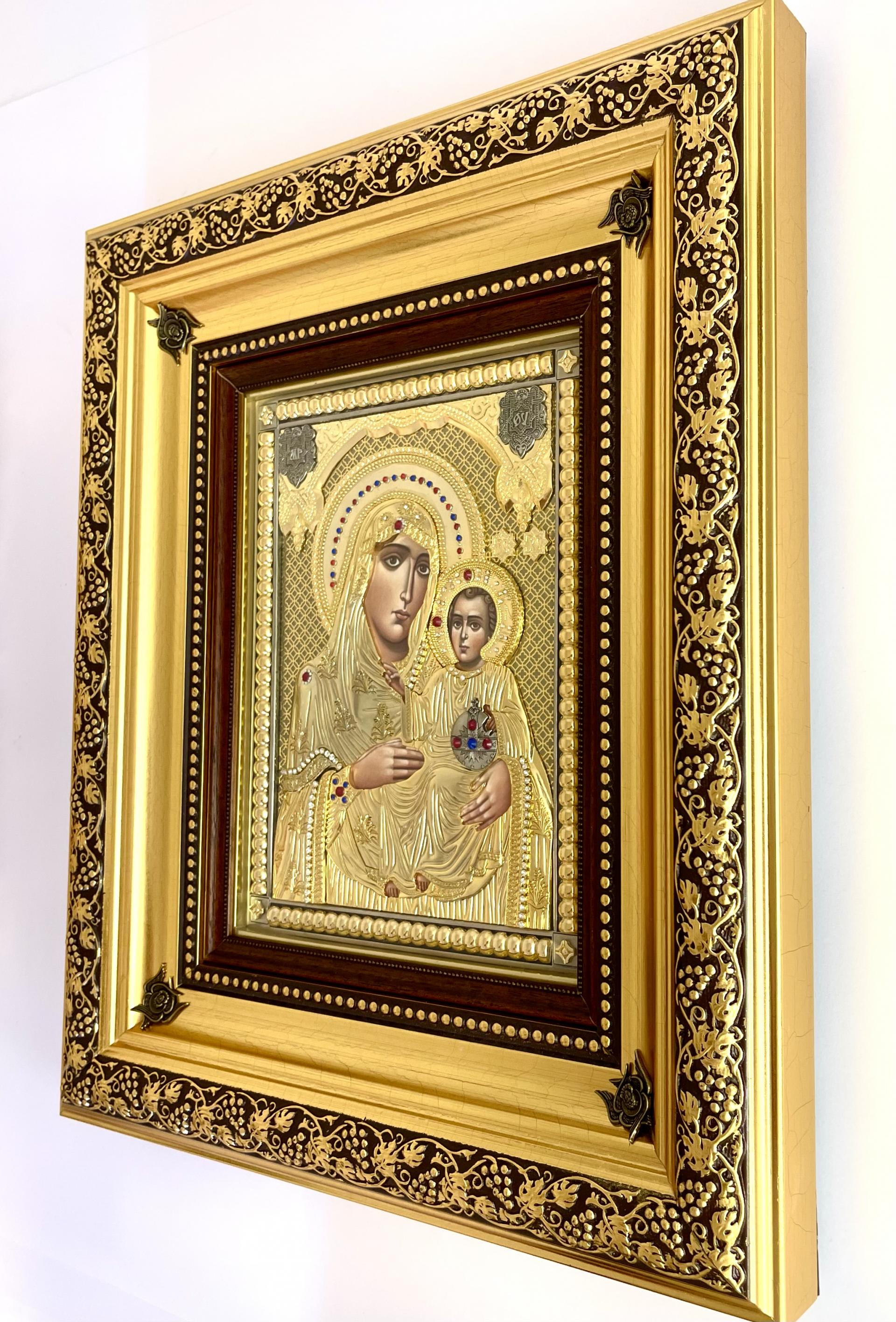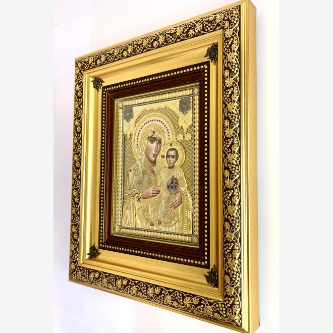 Icoană aurită și argintată impodobită cu pietre.