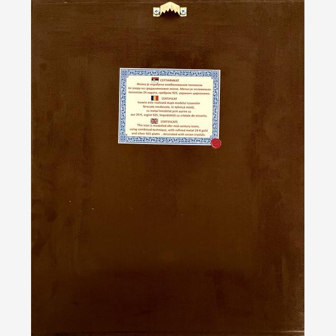 Icoană aurită și argintată impodobită cu pietre.