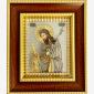 Icoană cu ferecătură metalică argintată si aurită. Rama este din lemn, icoana fiind protejată cu sticlă.