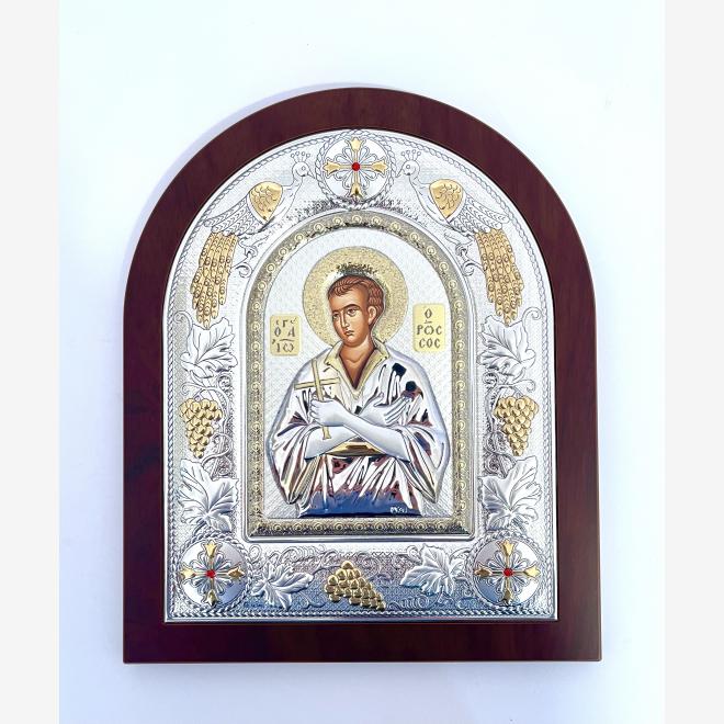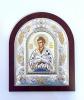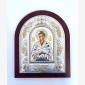 Icoană argintată  cu suport de lemn.