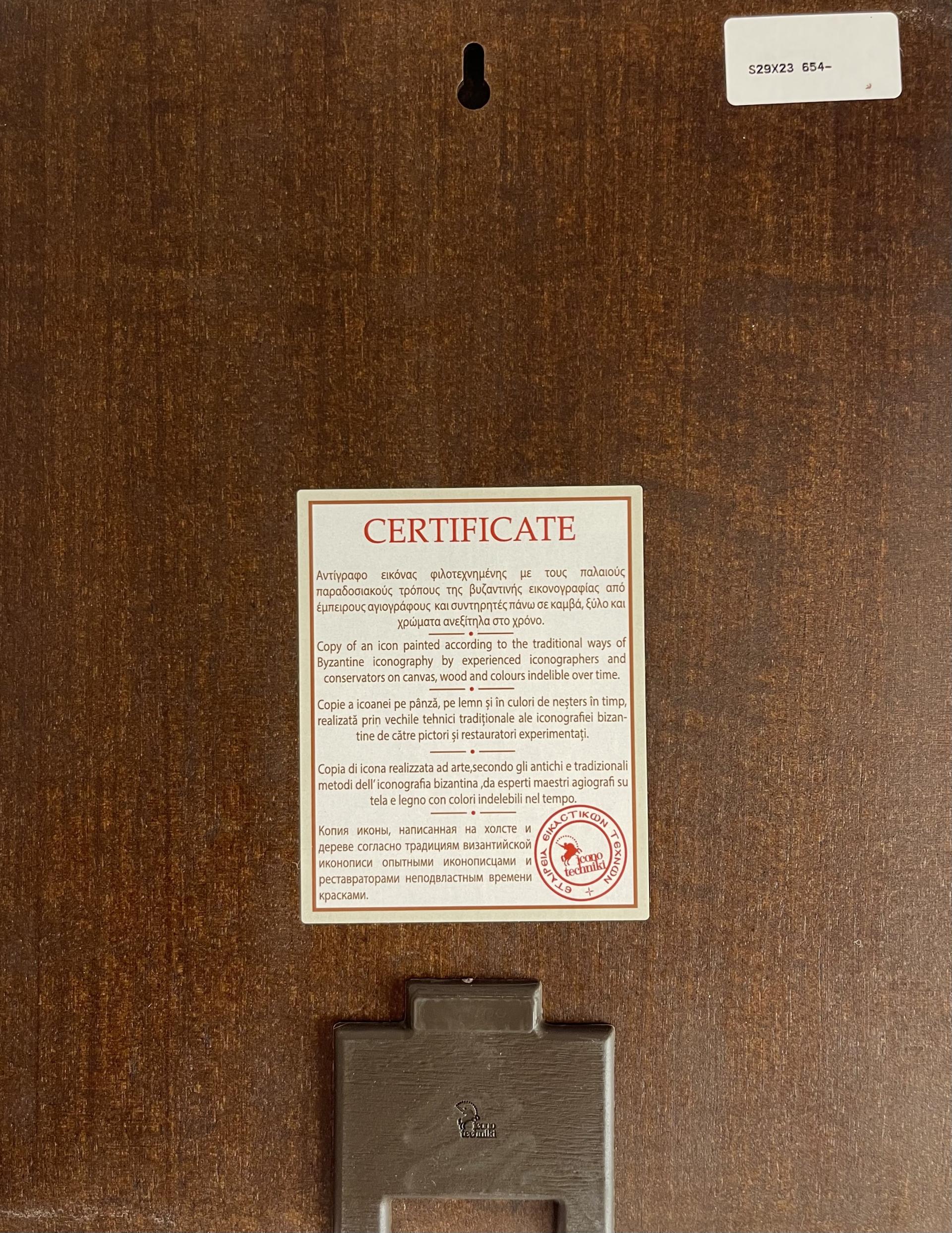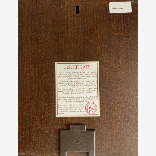 Icoană imprimată  pe pânză cu pigmenți naturali (canvas) și împodobită cu foiță de aur.