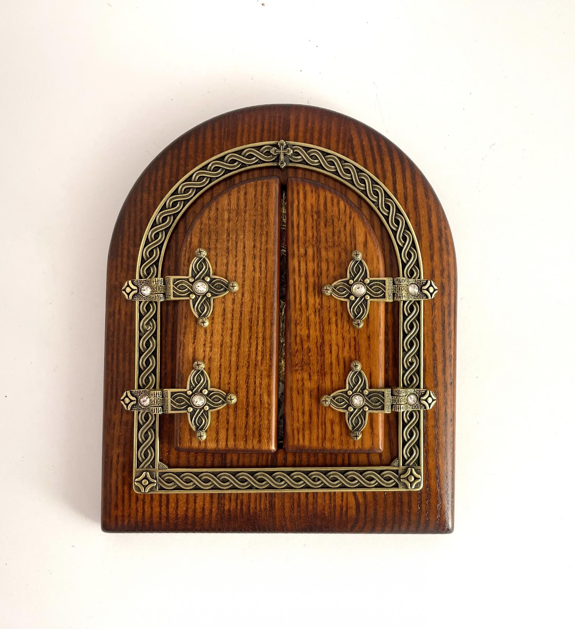 Triptic din lemn cu email si metal aurit si argintat